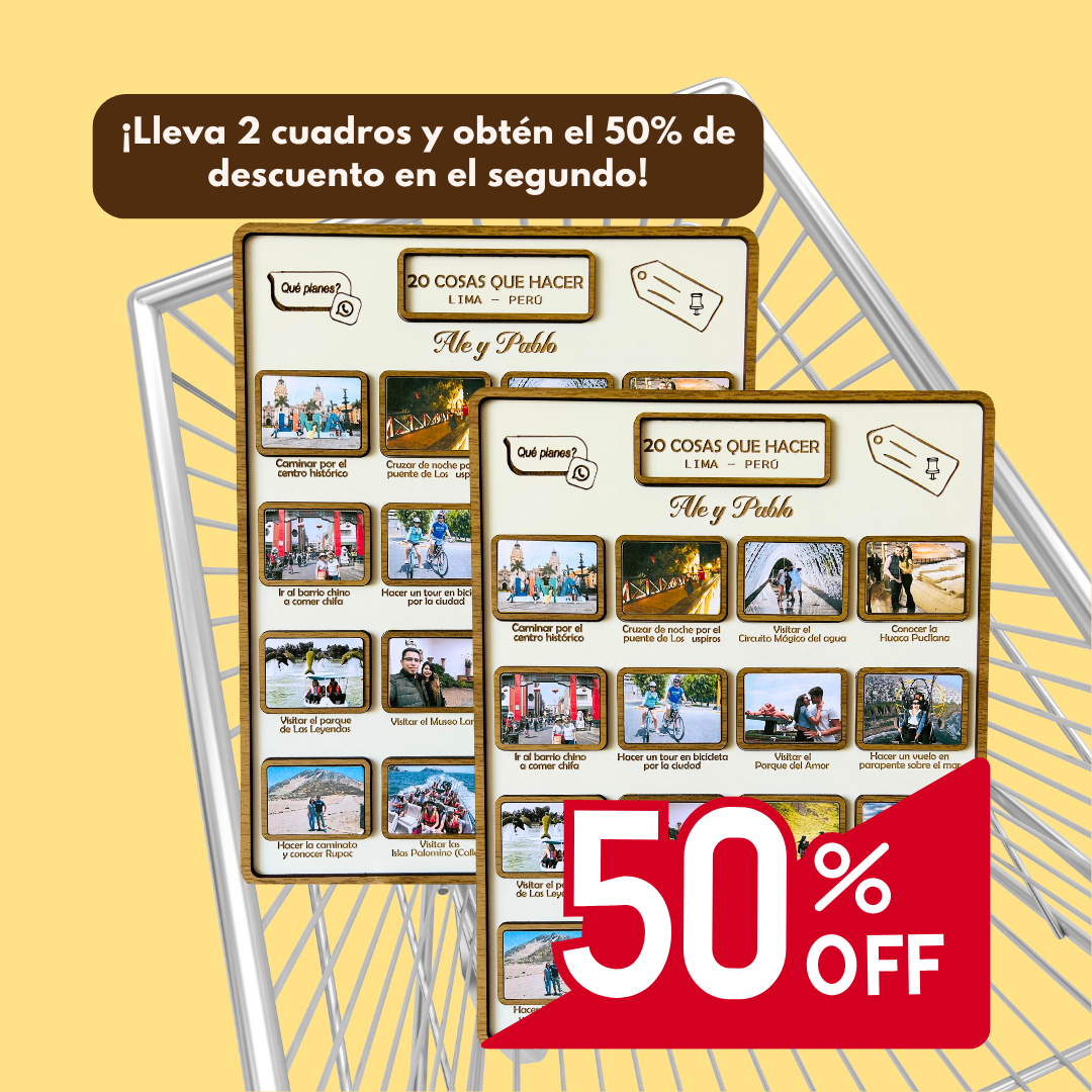 ¡Lleva 2 cuadros y obtén el 50% DE DESCUENTO en el segundo!