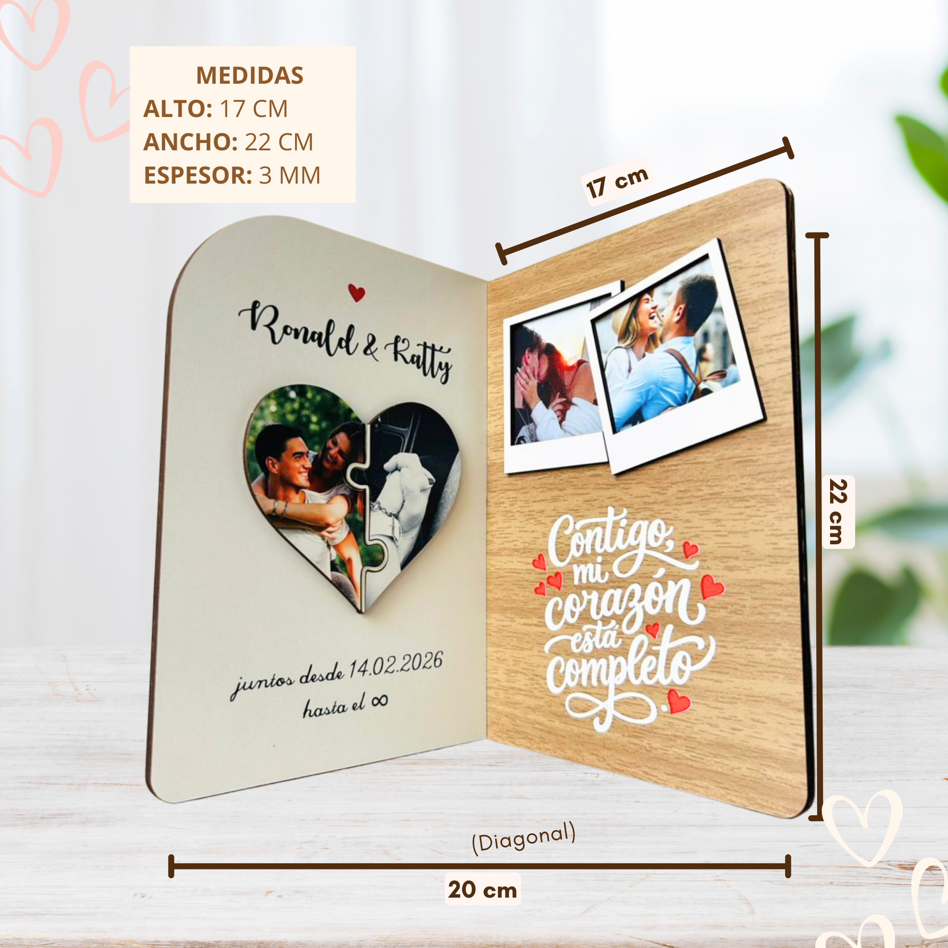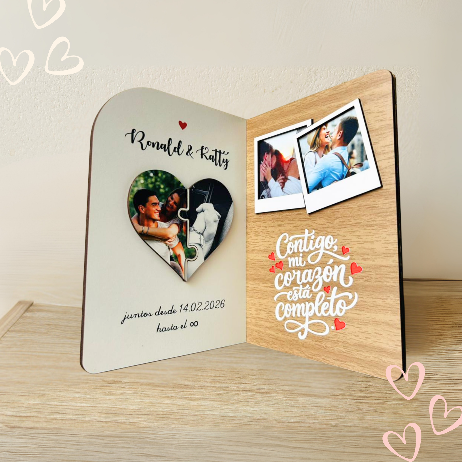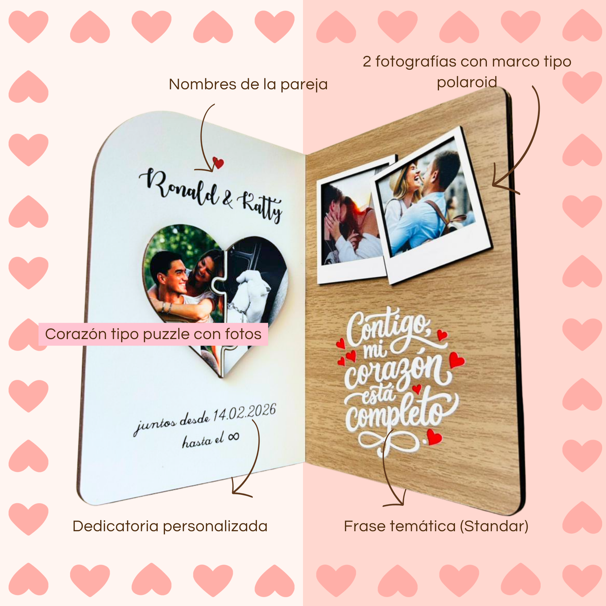 Puedes incluir tu propia foto y una frase especial y sus nombres, lo que lo hace único e irrepetible.