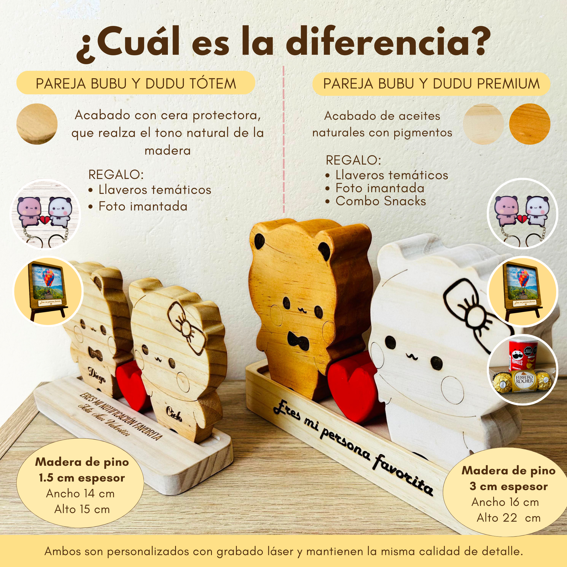 - Usamos madera de pino cultivada de manera sostenible de 1.5 cm de espesor.